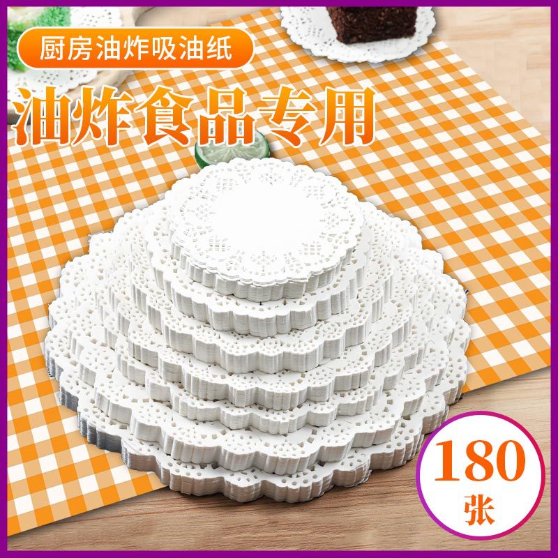 花の底の紙の円形の透かし彫りのレースの油を吸う紙のお菓子の台所の揚げ物のピザのパッドの紙はポテトチップスの紙を焼きます
