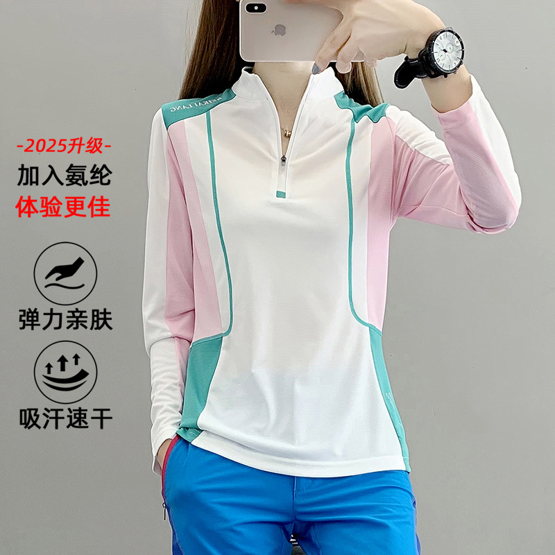 スパンデックス弾力速乾衣女長袖tシャツ新型通気性ランニングスポーツアウトドア徒歩登山速乾衣女