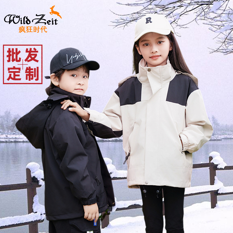 子供用スリーインワンジャケット、冬用ベルベット暖かいジャケット、学校の男の子と女の子、小学生、屋外防風ジャケット
