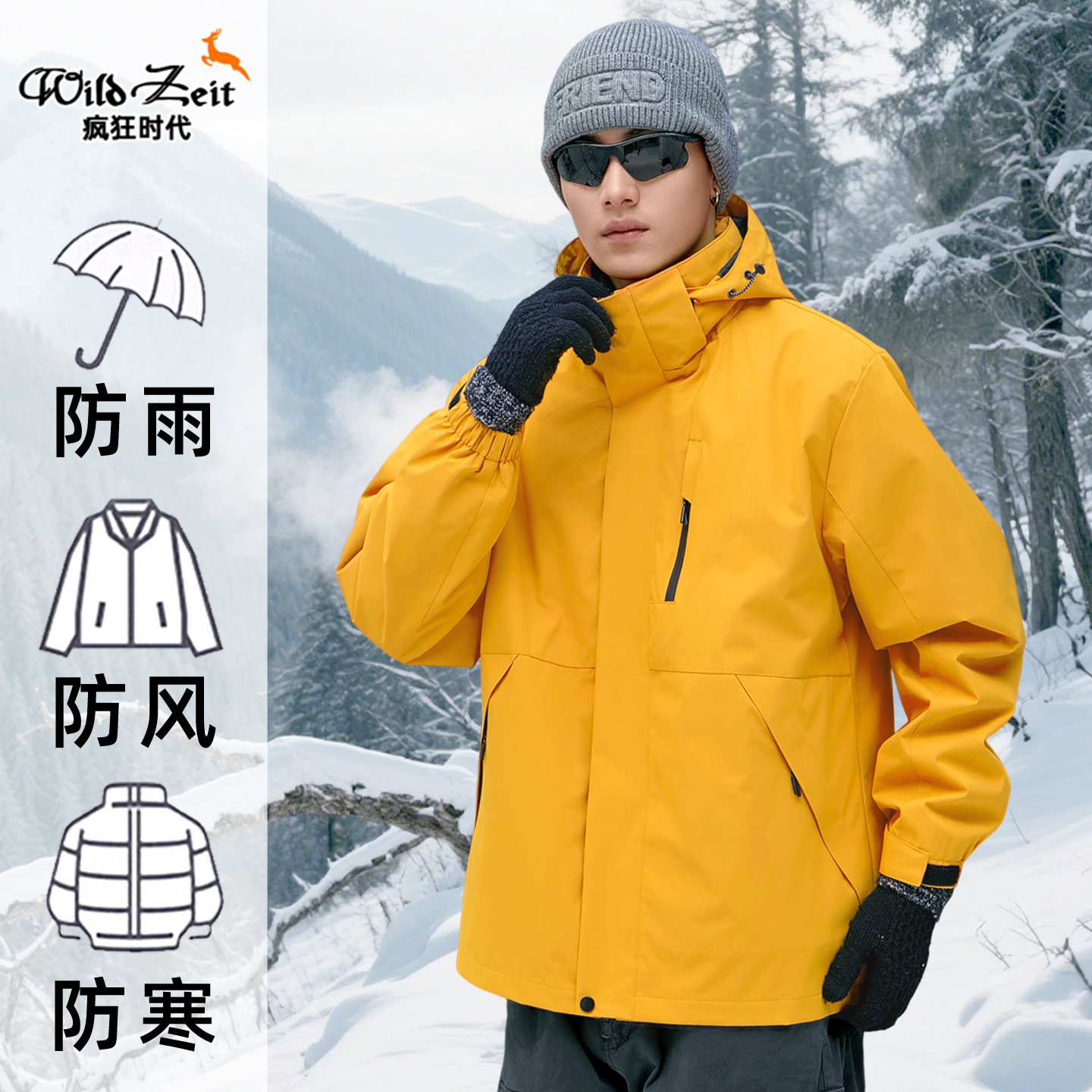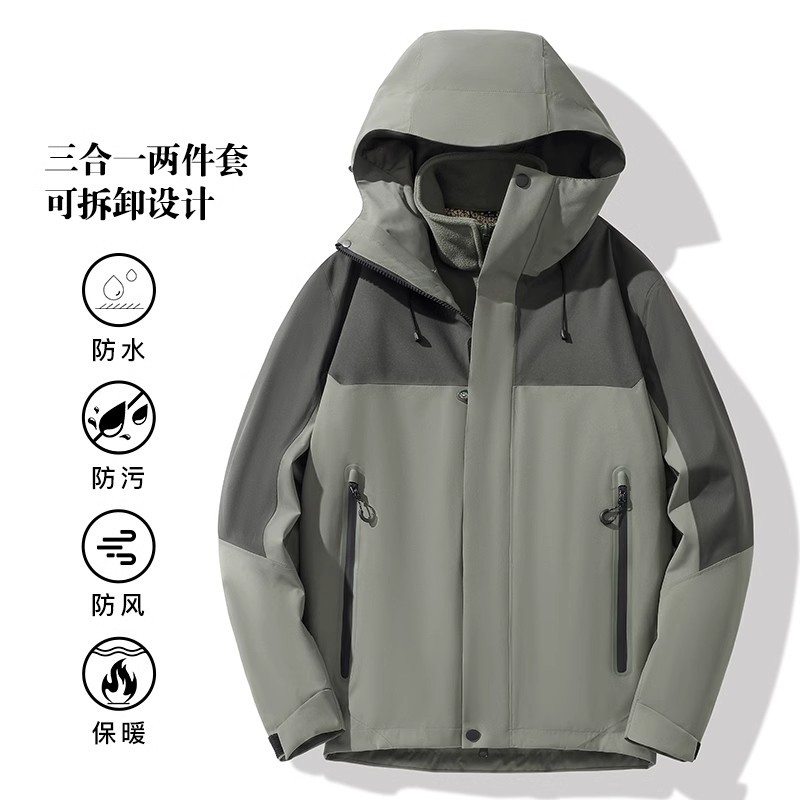 新款三合一外套户外工作服情侣秋冬季外套冲锋衣防风防水加绒夹克