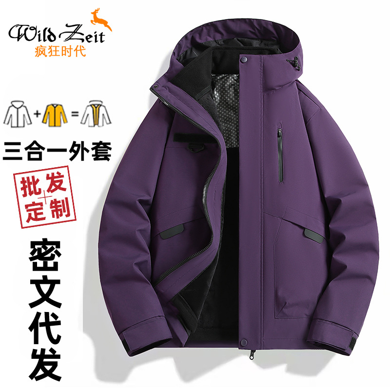 男性と女性のための新しいスリーインワンジャケット、アウトドアカジュアルジャケット、冬のベルベット登山ジャケット、取り外し可能なジャケット
