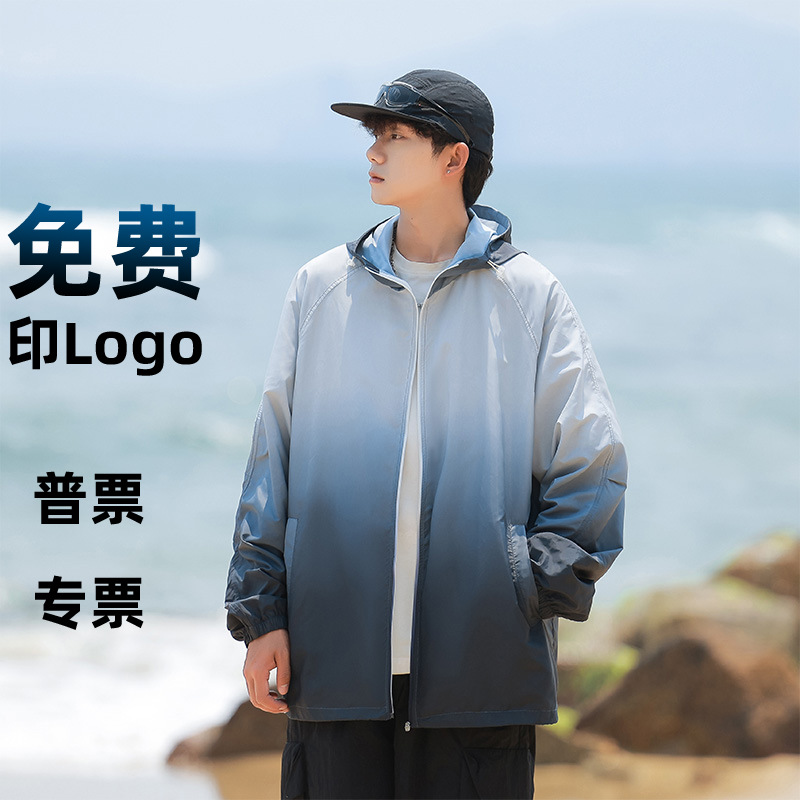 グラデーションカラーの軽量日焼け止め服、軽くて通気性のある日焼け止め服ジャケット、男性と女性用、2025年夏の新しいスタイル、ロゴを印刷可能