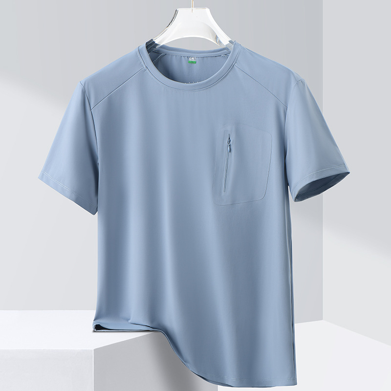 Niaojia 同型アイスシルク速乾 Tシャツ ストレッチ半袖 ジッパー付き スポーツ半袖 ランニング フィットネス トレーニング ハーフスリーブシャツ