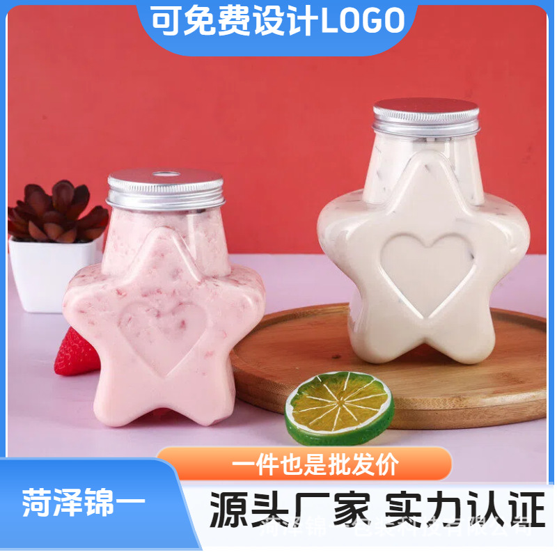 使い捨て五芒星 PET プラスチック飲料ボトル蓋付き 350 ミリリットルミルクティーボトル増粘飲料ボトル食品グレード