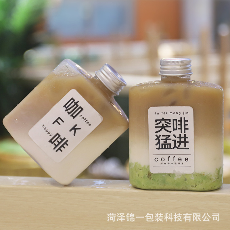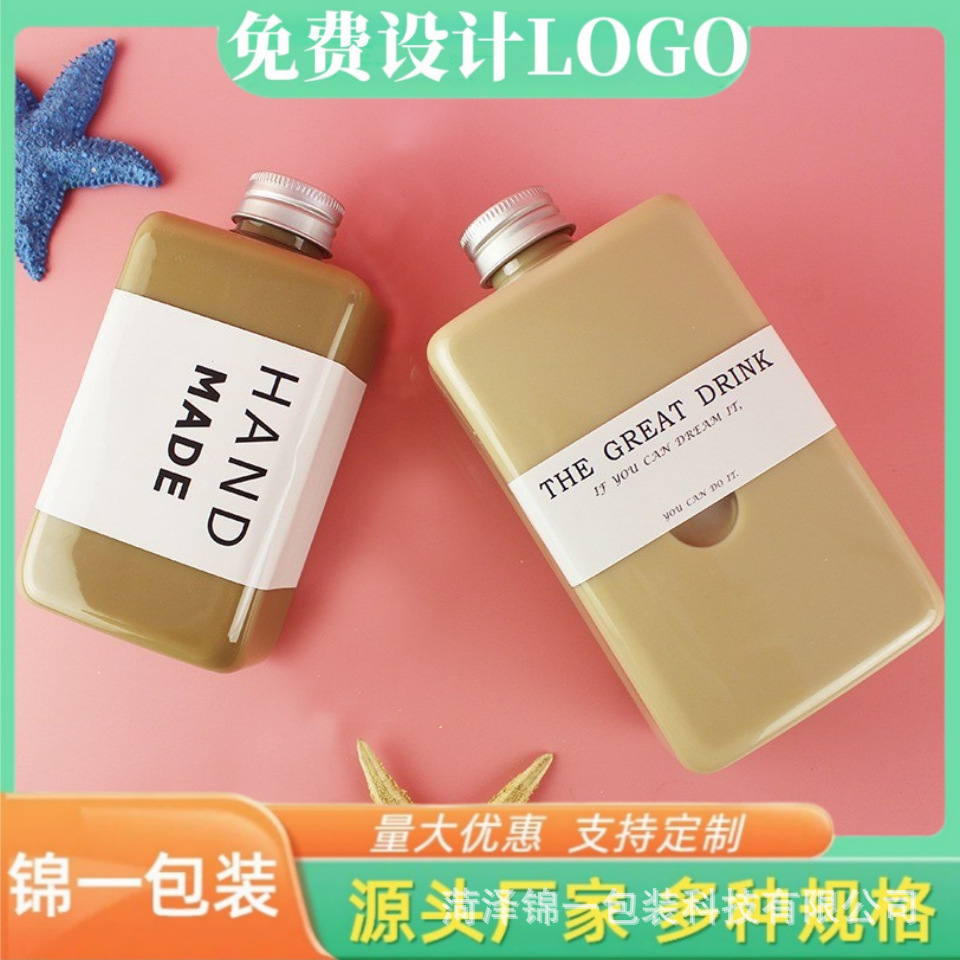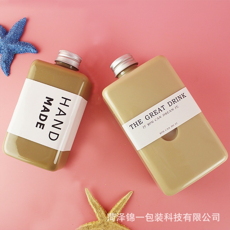 使い捨てクリエイティブ飲料ボトル PET フラットスクエアボトル 500 ミリリットルプラスチック絞りたてジュースボトルミルクティージュースボトル Uncle Qiu