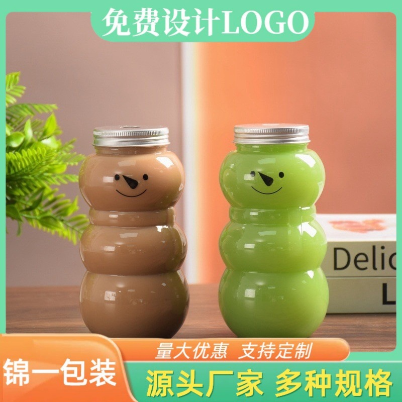 卸売り使い捨てミルクティーカップ500ml pet雪だるま飲料瓶ジュースカッププラスチック商用飲料瓶