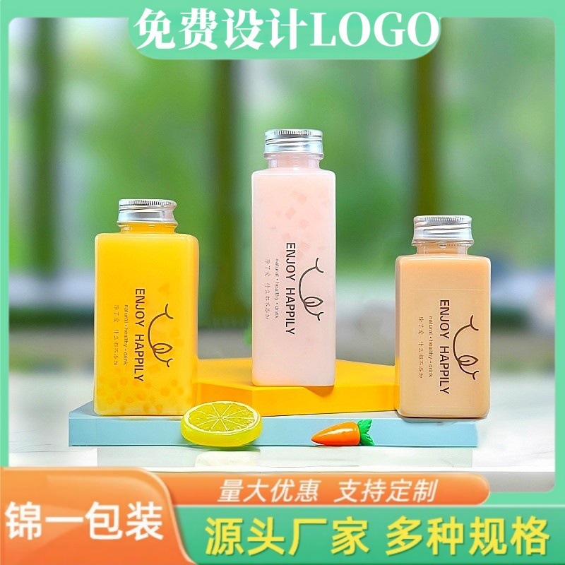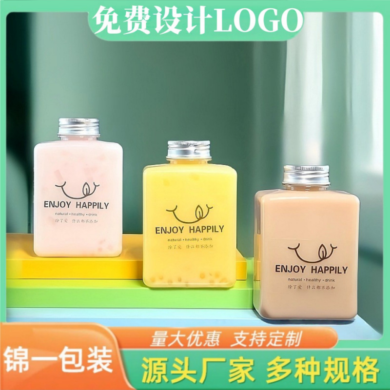 使い捨てネット赤哺乳茶瓶プラスチック高透明厚い角型瓶PET食品級包装カップ