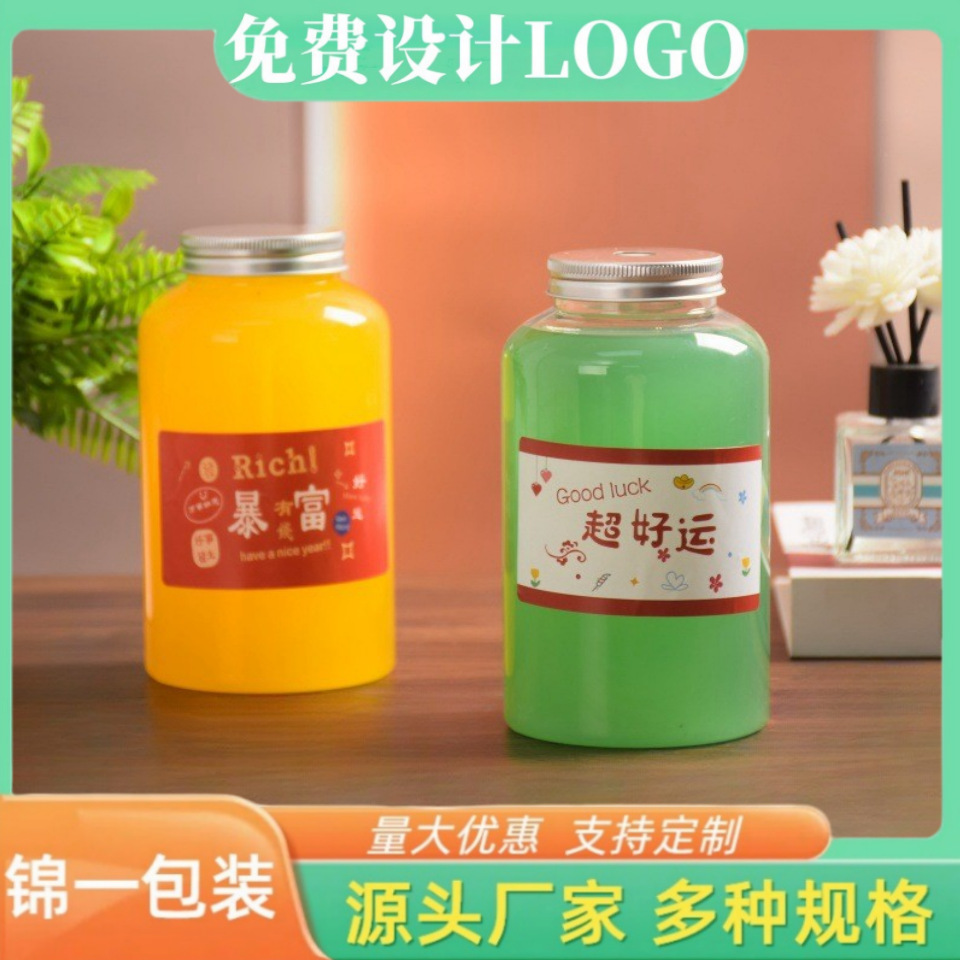 大口径500/600ml哺乳瓶68口ドライフルーツ貯蔵タンクPET透明飲料瓶ネット赤泰茶瓶