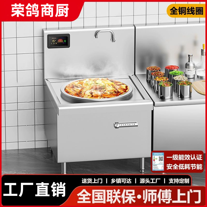 業務用電磁単頭単尾炒め炉 15KW ハイパワー電気炒め炉凹面ホテルキッチンダブル電磁炒め炉