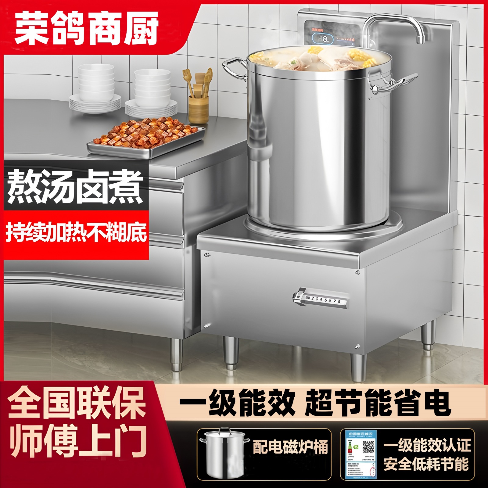 業務用電磁大鍋ストーブ高さ304複合底淮南牛肉スープポットハイパワー80牛肉と羊肉スープポット