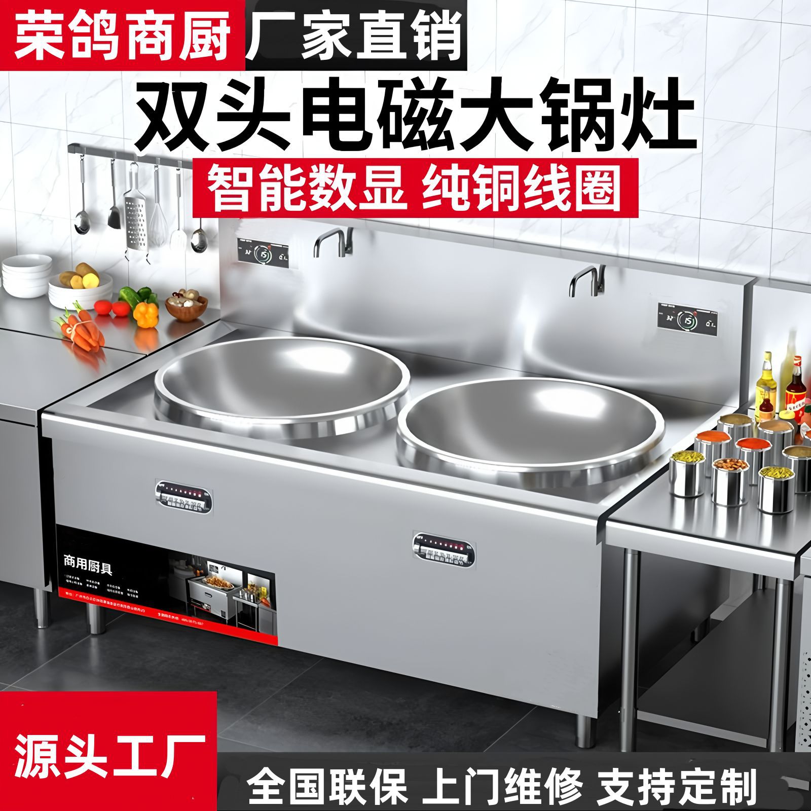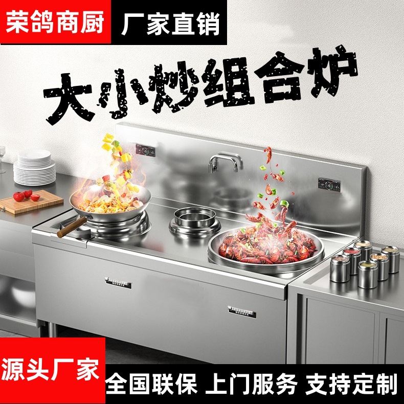 業務用電磁調理器大小炒めコンビネーション炉ハイパワー電気炒め炉大小2口炒めコンロ食堂大型鍋コンロ