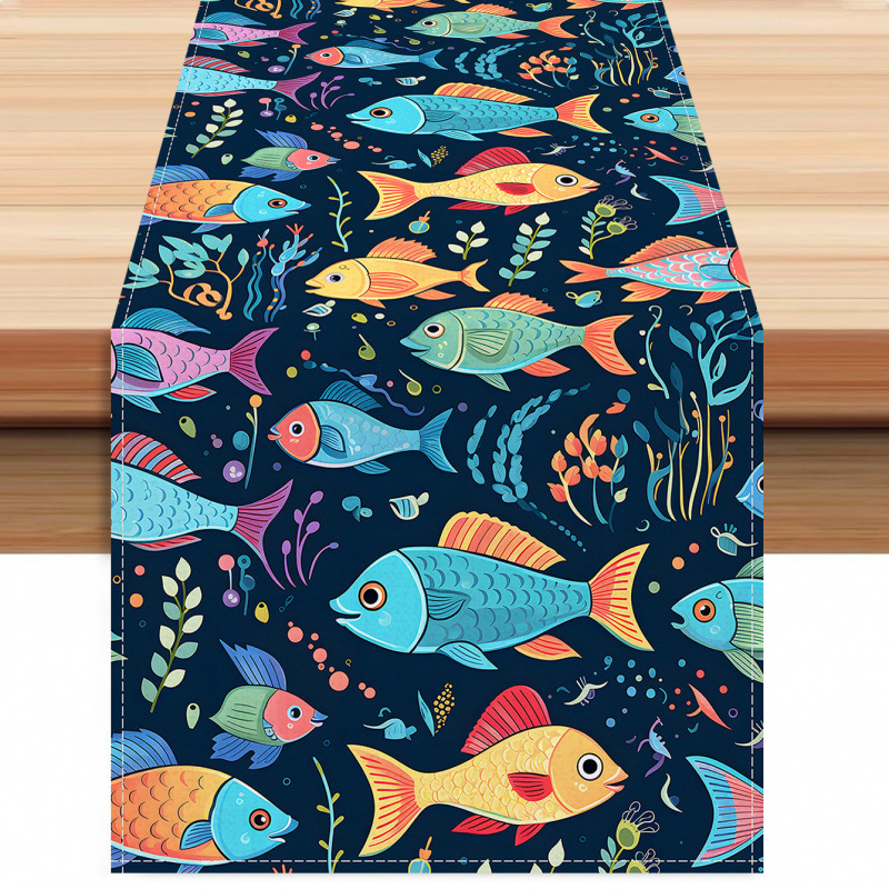 アマゾン漫画プリント小魚パターンテーブルフラグ新しいアメリカンリネンテーブルクロスリビングルームコーヒーテーブルダイニングテーブルテーブルマット