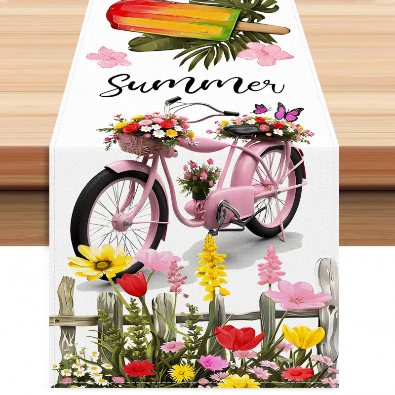 アマゾンの新しいピンクの自転車フラワーテーブルフラッグアメリカンリネンリビングルームコーヒーテーブルダイニングテーブルテーブルマット装飾ティーテーブルクロス