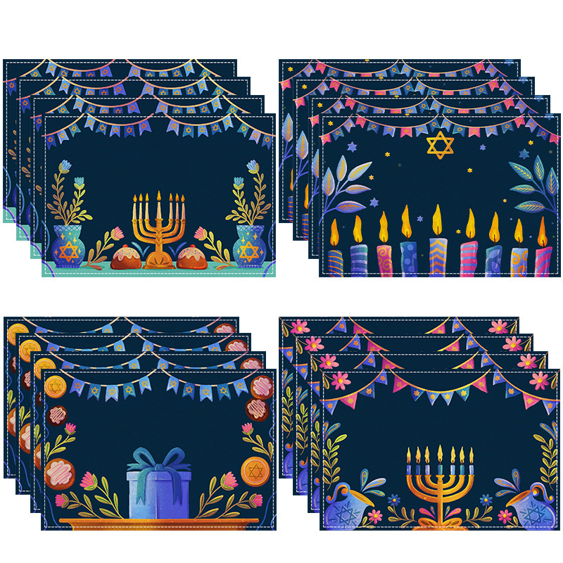 新しいハヌカプリントプレースマットキャンドルライトホリデーレストラン装飾テーブルマットキッチンテーブル断熱マットクロスボーダー卸売