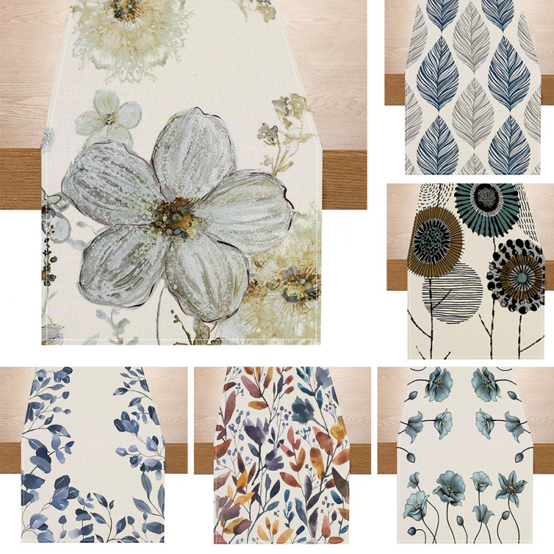 新しいフラワーリネンテーブルフラッグ断熱マット布ティーフラッグデジタル印刷テーブルクロスホームレストランテーブル装飾クロスボーダー