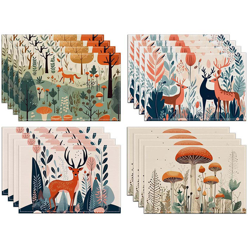 新しい森林植物プリントプレースマットキツネ鹿リネンテーブルマット西洋食ホームリビングルームホリデーパーティー断熱マット