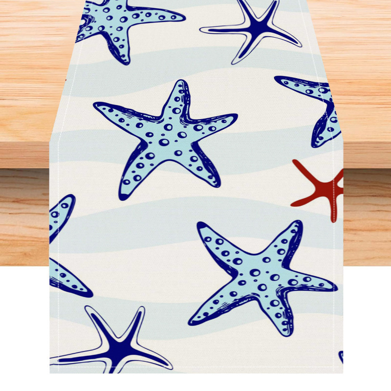 ヒトデプリントテーブルフラグ新しいオーシャンシリーズリネンテーブルクロスクロスボーダーリビングルームテーブル装飾テーブルクロスマットコーヒーテーブルクロス