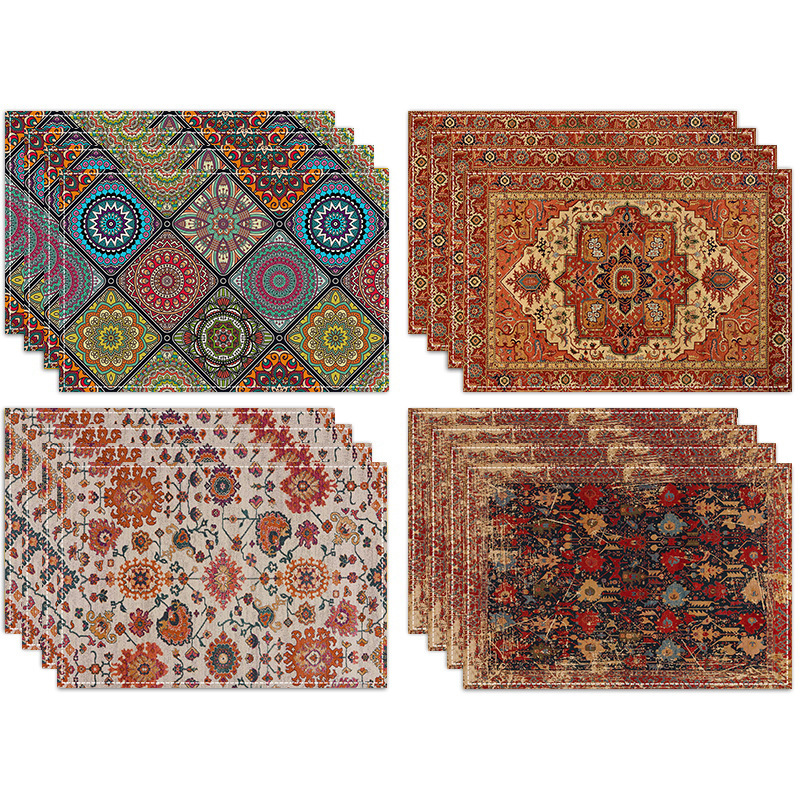 Amazon 新しいリネンプレースマット抽象的なレトロなマルチカラープリント北欧キッチンレストラン装飾断熱テーブルマット