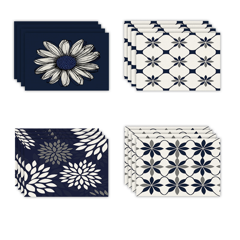 新しいクロスボーダー黒と白の幾何学的なデジタルプリントリネンプレースマット西洋レストランプレースマット防汚断熱レストランテーブルマット