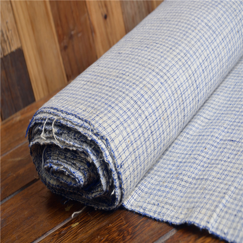 上海の全綿の古い粗布の手織布の布の古い布の手作りの布-無地の小さい格子の組み合わせ
