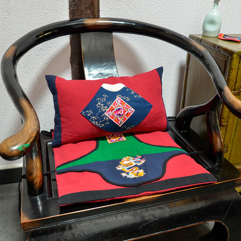丹鳳布芸: 如意刺繍シリーズ-老花布如意三角クッション抱き枕 (芯を含む)