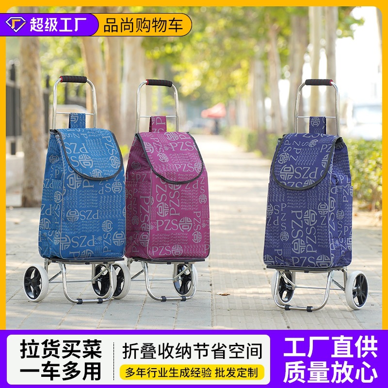 スーパーで野菜を買う高齢者の手で車を引っ張るプレゼントロゴ折り畳みショッピングカートアルミ合金タイカート