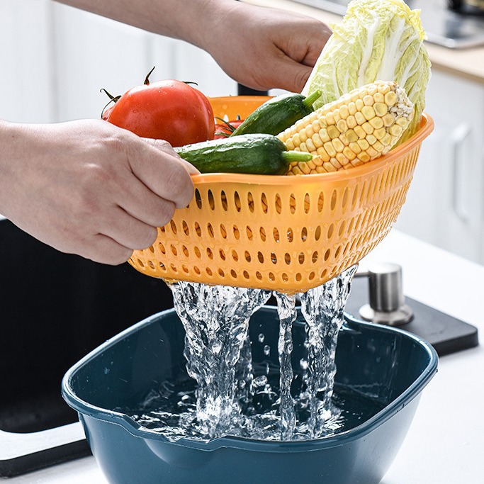 分離式二重水たまりかご六点セット台所野菜皿鍋野菜収納かご水洗いかご