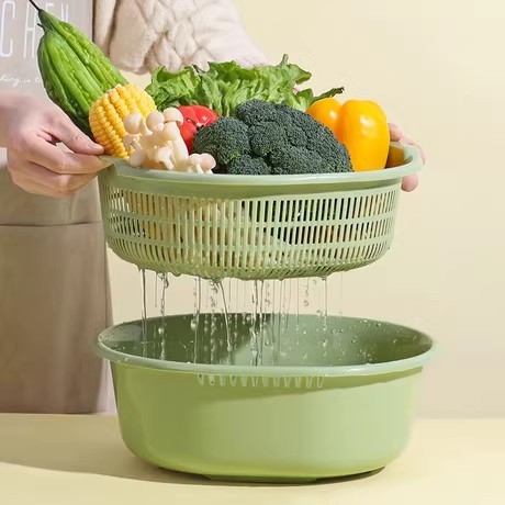 二重の多機能水たまりの野菜を洗うたらいの家庭用の大きいサイズはプラスチックの台所の果物のたらいを厚くして果物と野菜の果物のかごをふるいます。