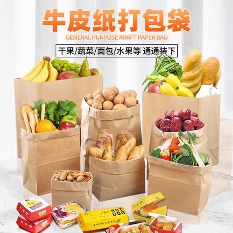 包装袋食品包装袋クラフト紙袋果物野菜冷蔵庫パン収納袋防油スナック包装紙袋