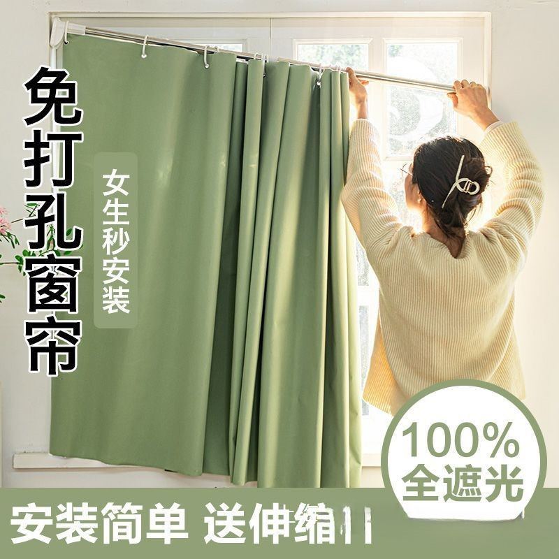 パンチフリー完全遮光小型カーテンサンシェード布 2024 新しい寝室遮光カーテンレンタルルーム断熱と遮音