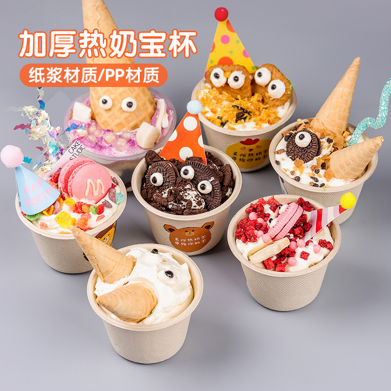 ホットミルクパッケージボックス、綿氷ボウル、使い捨てかき氷ボウル、スノーフレークスムージーボウル、アイスクリーム包装箱、紙コップ