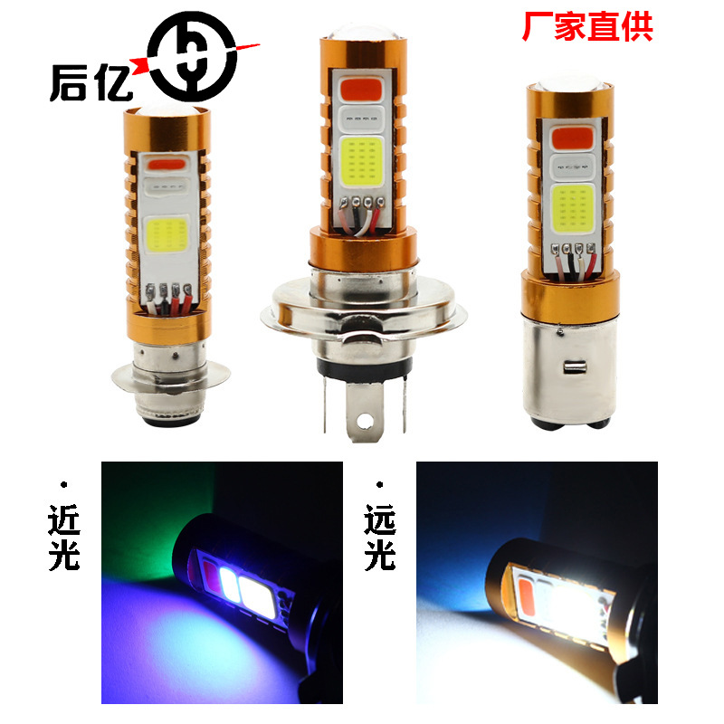 後億オートバイledヘッドライトh4近光遠光三色cobヘッドライトba 20dスポットライト大電球