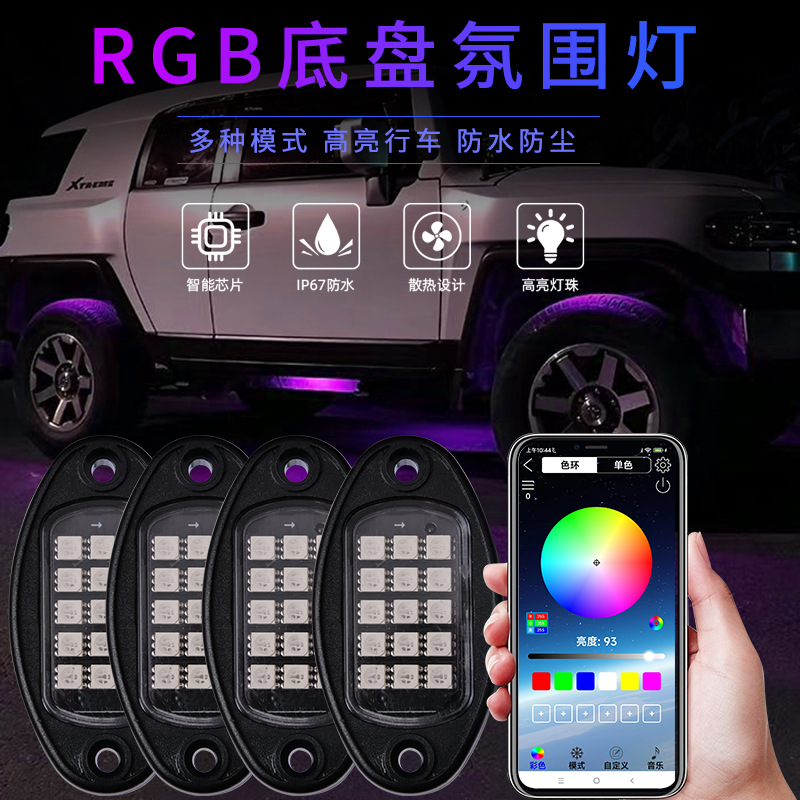 オフロード車のシャシーのランプの幻のled 15灯のサイドランプの皮のトラックの車の下のランプの雰囲気のランプの防水のAPPは制御を揺り動かします。