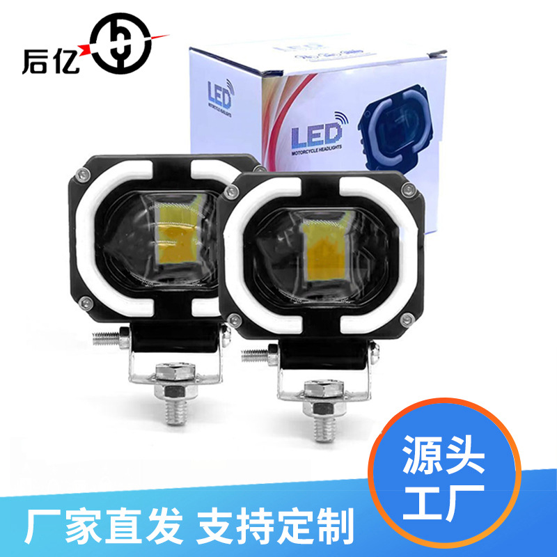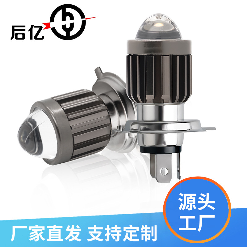 オートバイライトH4黄白2色遠近光ヘッドライトLED小鋼砲スポットライト魚眼レンズ電動ライト