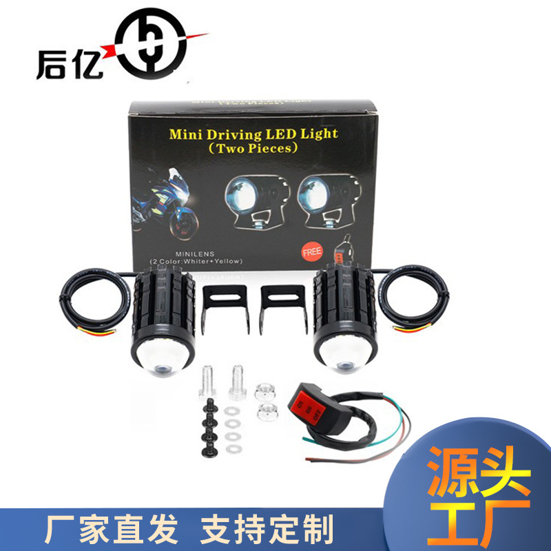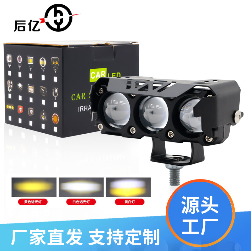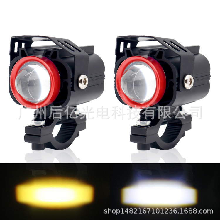 クロスボーダー人気オートバイスポットライトLED 2色小鋼砲遠近一体防水超亮12-80V