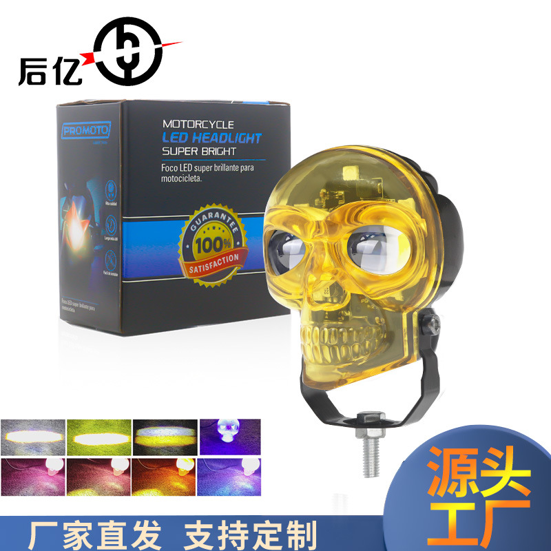 カラフルなスカルのスポットライトの白い黄色の2色のオートバイのスポットライトのRGBの七色の車のライトは電動のライトを改造して国境を越えます。