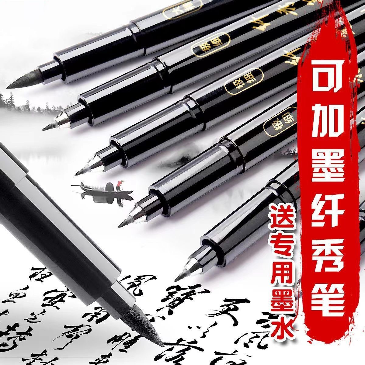 ペン式毛筆ソフト筆秀麗筆小楷書美工書道写経狼ミリ筆は墨を入れてロゴを作ることができる