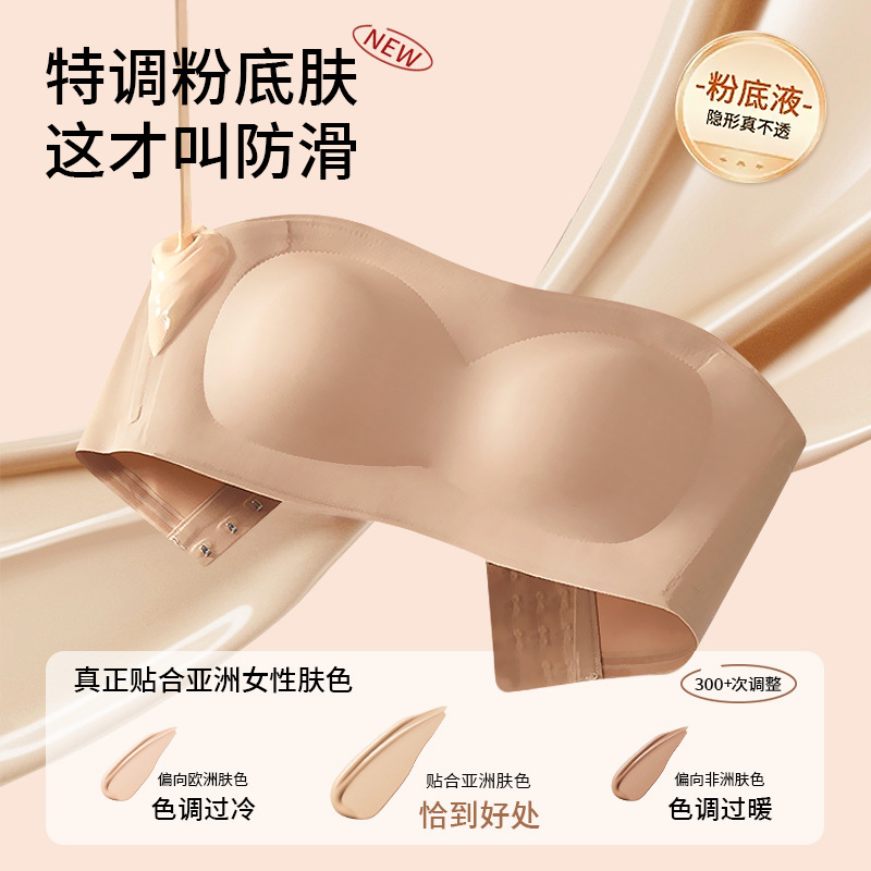 夏用ストラップレス滑り止めシームレス美背中下着女性用小胸プッシュアップワンショルダーたるみ防止インビジブルブラ