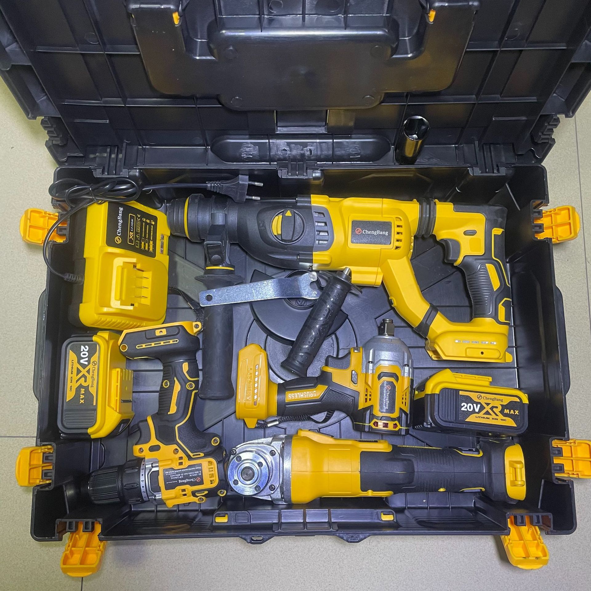 外国貿易2312黄色リチウム電気工具ブラシレス4点セットハンマー電気ドリル電動レンチアングル