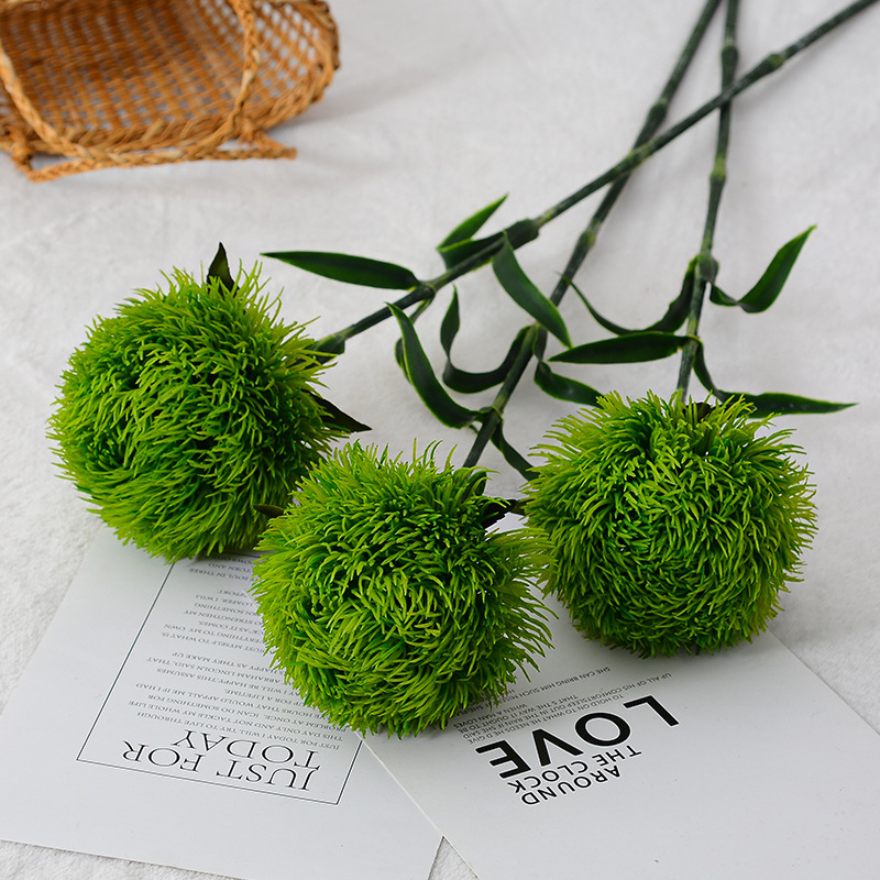 中国式の現代家庭の生け花の造花の手触りの緑の石竹の見本の部屋は柔らかいゴムの緑の毛玉を陳列します。