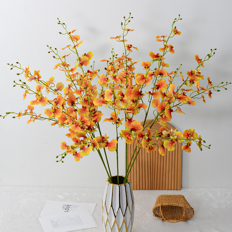 百合の孔雀が踊っている蘭のシミュレーション花の結婚祝いの家のリビングルームの装飾のテーブルの置物の偽の花の撮影の道具の卸売りをシミュレーションします。
