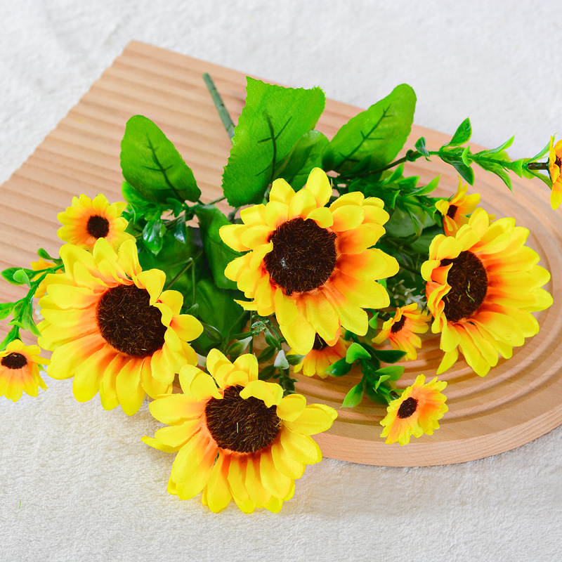13頭の単束のシミュレーションの小さいひまわりの家の装飾の人工の造花の絹の花の撮影の道具の太陽の花のシミュレーションの花