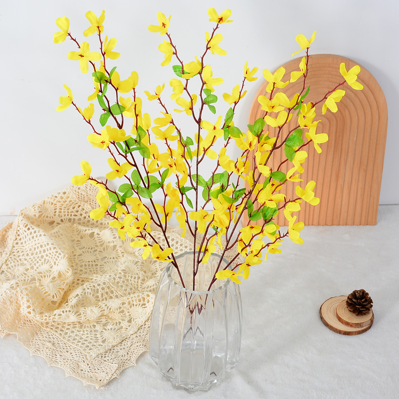 真正面春の花の人工花の客間の黄色の造花の家庭の絹の花の置物の小さい黄色の花の乾いた花の装飾をシミュレーションします。
