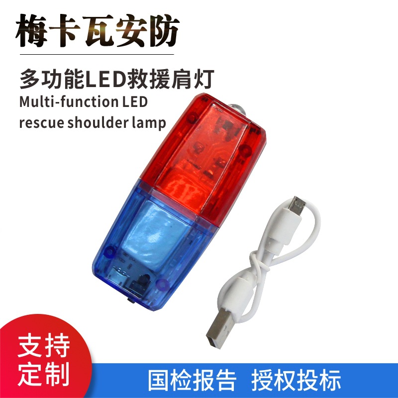 警告ストロボフラッシュランプ赤青LED充電肩ランプ肩クリップフラッシュランプパトロール代理多機能救助