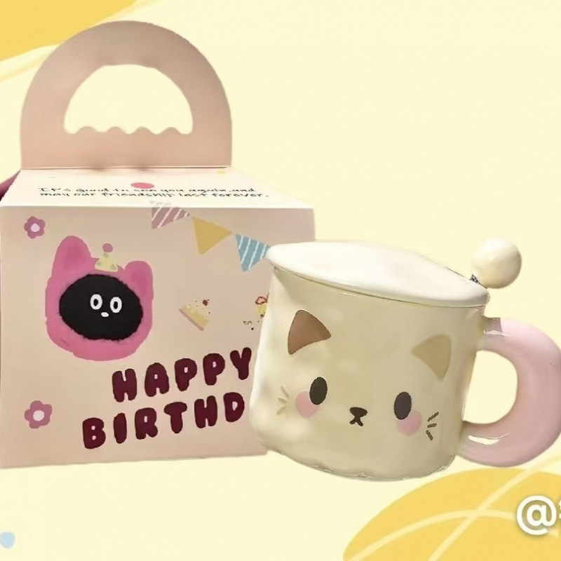 かわいい子猫の蓋付きマグカップ、セラミックウォーターカップ、女の子の誕生日、カップルへの見栄えの良い意味のあるギフト