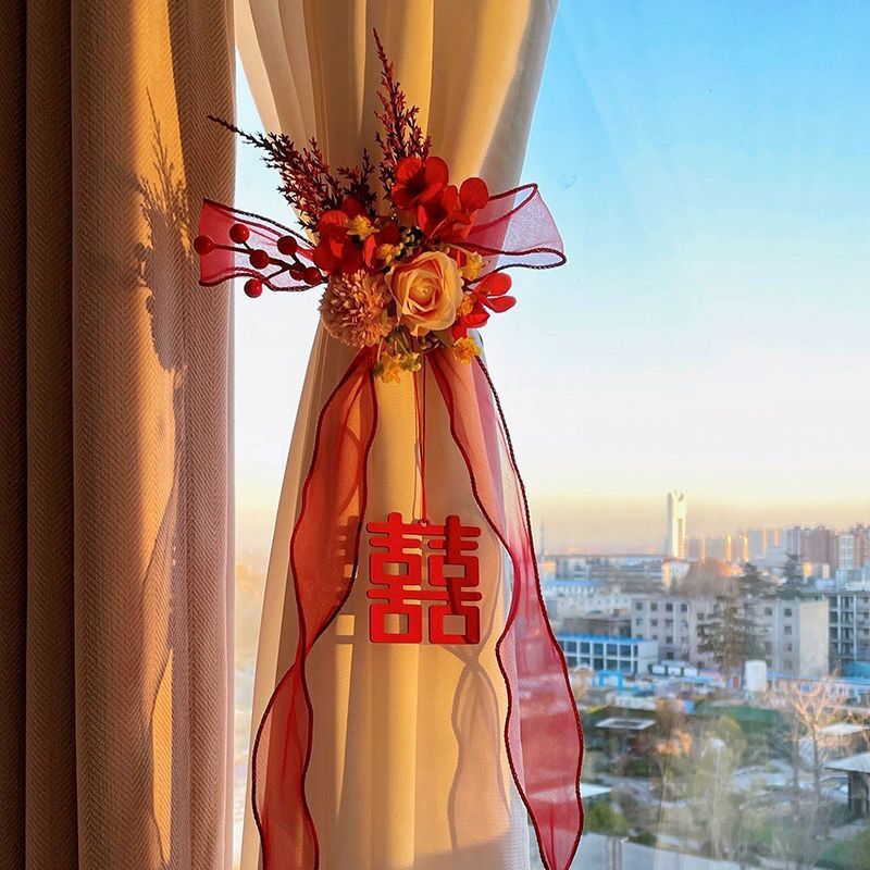 結婚カーテンの装飾の結婚部屋の配置の蝶結びのベルトのスーツの結婚式の男女の方の新築の結婚祝いの蝶結びの服