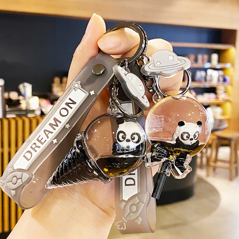 かわいいパンダの入油ミルクティーカップ流砂瓶のキーホルダー