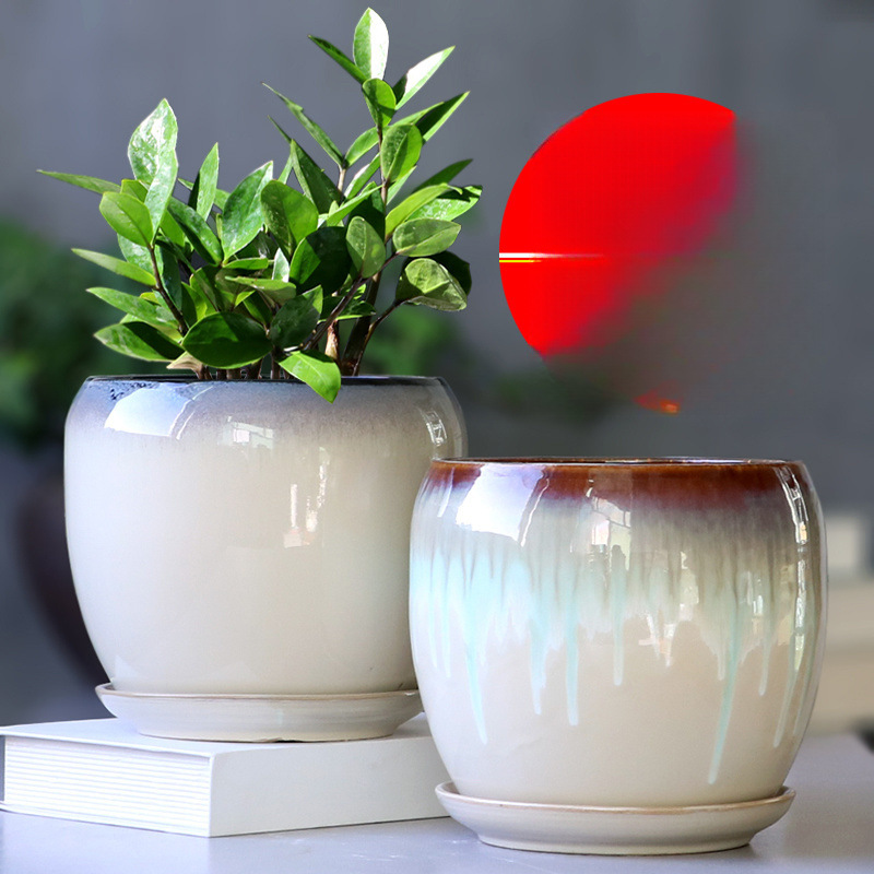 植木鉢の陶磁器の大きいサイズの家庭用トレー付きの個性はシンプルです。