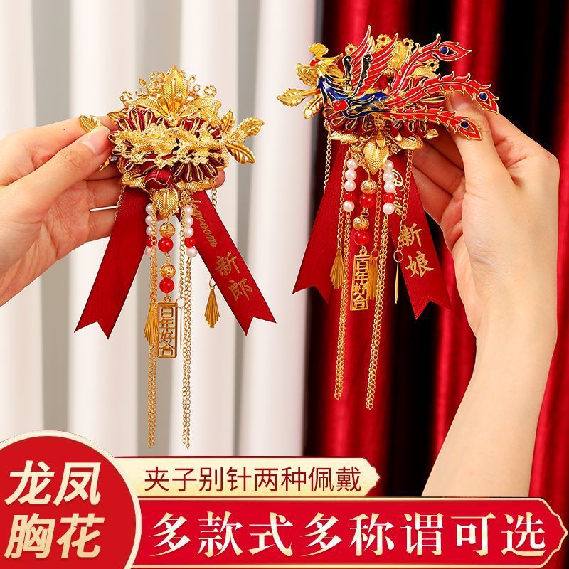 ウェディングドラゴンとフェニックスのコサージュ、新郎新婦のブローチ、高級コサージュ、ウェディング用品一式