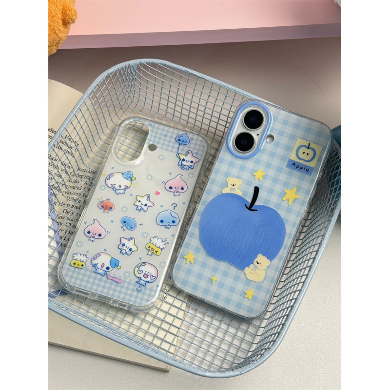 格子縞ブルーアップルベアー適用OPPOreno13携帯ケースA97/A58かわいいA5活力版A3女A2x